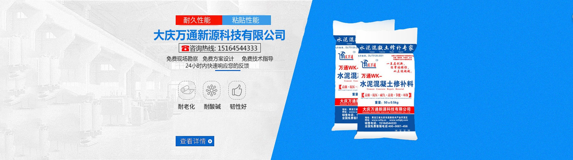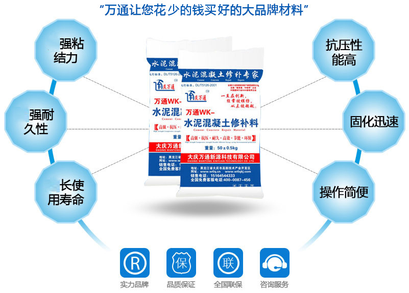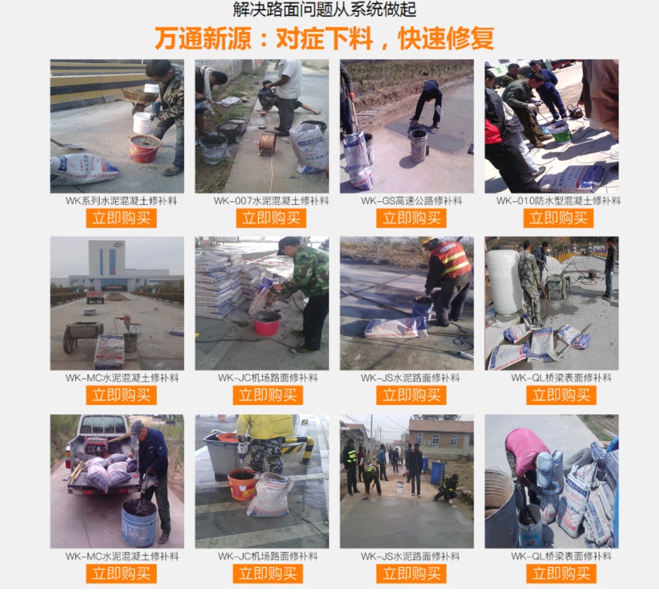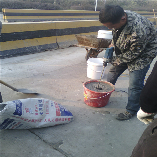 大慶萬通新源科技有限公司獨有的混凝土路面高強速補料,是水泥混凝土路面病害修復的好材料。疲勞、凍融循環(huán)、彎曲壓力、滲水和基層破壞等原因都會引起水泥路面的破損,從而帶來高昂的維護費用。與以往的剛性修補方法不同,混凝土水泥路面維修速補膠提供了一種獨特的柔性修補產品和技術,高柔性、高抗拉性,可跨伸縮縫施工和高抗壓性使得混凝土快補產品為水泥混凝土路面提供了******性的修補。傳統(tǒng)的剛性修補方案,如環(huán)氧砂漿和快干水泥產品,由于其自身的粘結失效,抗疲勞性低以及與原路面不同的伸縮系數,修補面會在短時間內失效或產生新的裂縫,需要反復修補,有效期短且費用高昂。大慶萬通新源科技有限公司的混凝土水泥路面維修速補膠可以隨原路面一起伸縮,移動,從而避免了粘結失效和產生新裂縫。萬通快補產品優(yōu)異的粘結性、柔韌性和高防滑性,特別適用于水泥路面的淺層粘合修補,多邊角混凝土板層修補,跨伸縮縫修補以及路面沉陷修補。萬通混凝土病害修補料針對混凝土起皮起沙、斷板裂縫、蜂窩麻面、坑槽露石子、漏筋掉皮、橋梁的掉皮漏筋快速通車使用時間長。應用萬通快補產品,施工后一天就可以恢復交通。大慶萬通新源科技有限公司的萬通水泥路面維修速補膠適用于高速公路、機場路面、農村村村通路面、廠坪、學校操場、市區(qū)公路、小區(qū)路面、橋梁、水泥路面的修補。使用萬通特快補材料修補路面可以一勞永逸! 水泥地面起砂怎么辦,混凝土修補劑混凝土地面起砂,混凝土地面修補,地面起砂怎么辦,